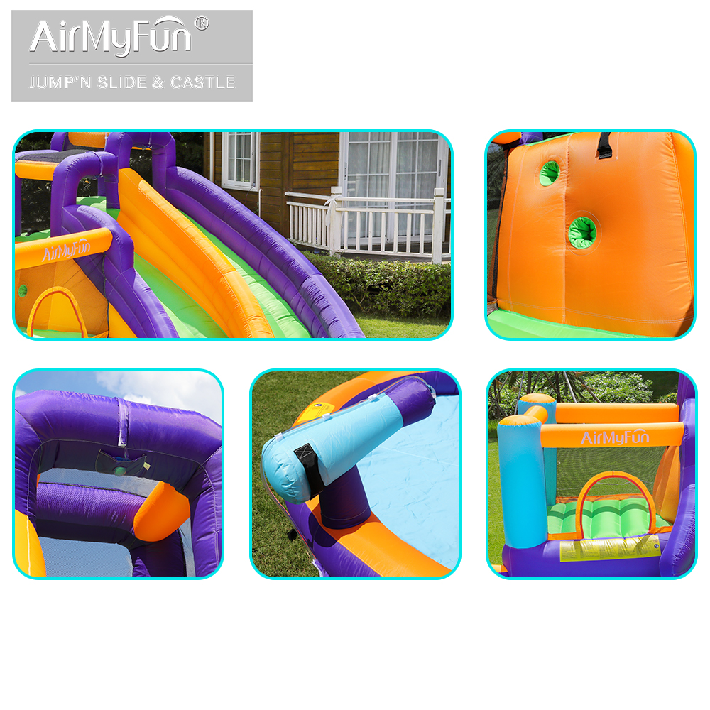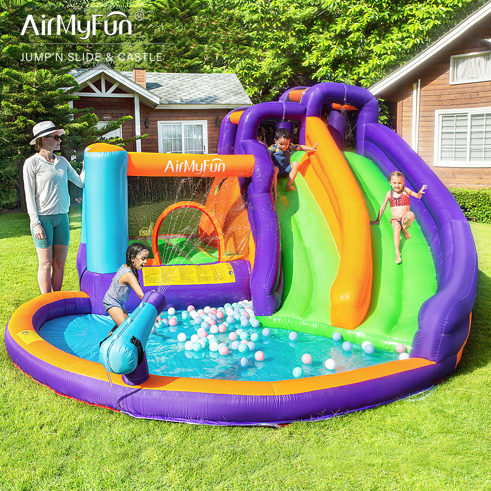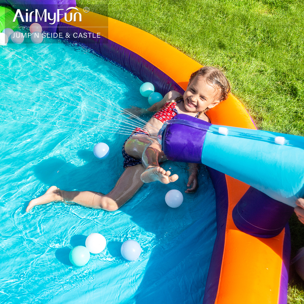 מתנפח מים בעל 2 מגלשות, בריכת מים, משטח קפיצה ורובה מים